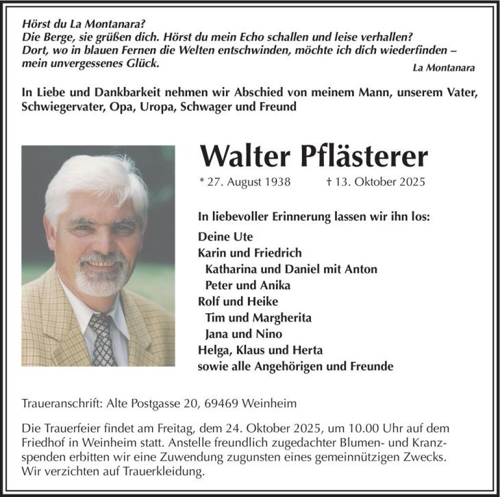 in diesen Tagen fühlen wir mit Ihnen und wünschen Ihnen von Herzen, dass Sie aus den glücklichen Erinnerungen Kraft schöpfen, um positiv in die Zukunft zu gehen. Diese Gedenkseite möge Ihnen dabei helfen, Ihre Trauer zu teilen und das Andenken gemeinsam wachzuhalten.